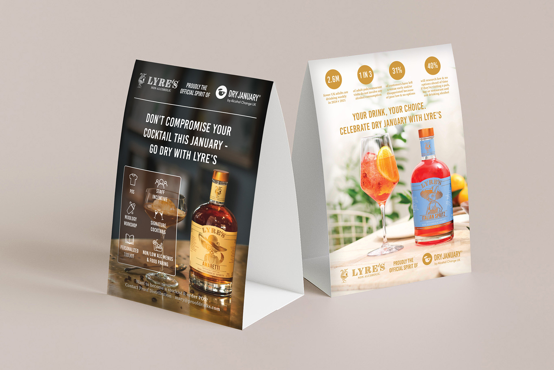 In this project, my objective was to create promotional materials for the "Dry January" campaign, including a menu, table stands, and a magazine advertisement. I maintained a cohesive aesthetic across all materials, resulting in promotional items that effectively drove awareness and sales for the company's non-alcoholic beverages during the campaign.