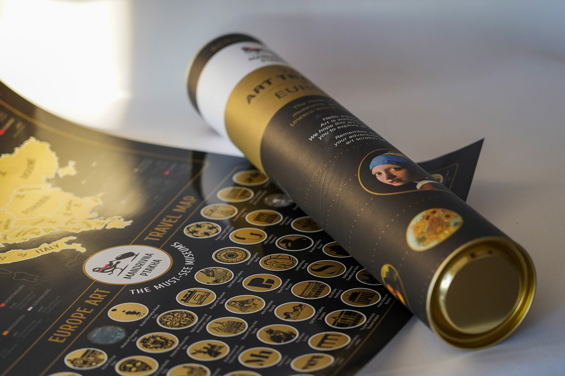 In this project, I had the opportunity to create a cohesive and captivating branding and packaging design for a scratch-off map product. My work spanned multiple design aspects, including logo creation, packaging, and the map itself.